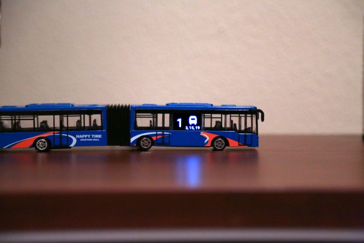 First of all, I needed a bus! You can't make a bus station bus without a bus, so I took a trip to my local toy store and got the beautiful piece of Chinese crap that's pictured to the right for a whole $3. It's made out of metal and plastic, which makes it very resistant to collisions and not too bad-looking. It even includes the usual Chinglish "Happy time shopping mall" and "Charm travel city line" that are the sine qua non of Chinese-manufactured toys.