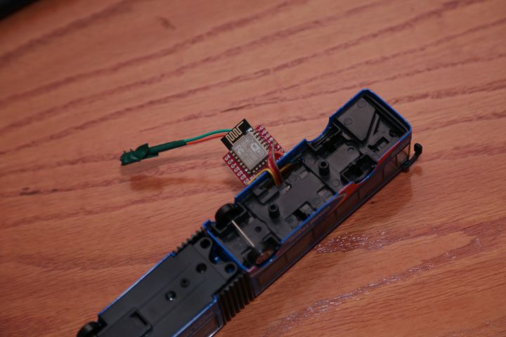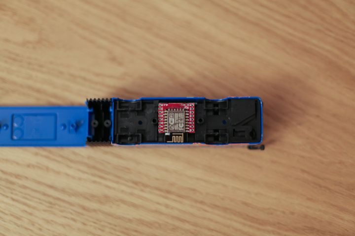 Luckily, I had already designed the smallest ESP8266 breakout in existence, so I tried that. It ended up fitting more or less exactly, with a bit of room to spare, in both dimensions. It's not as convenient as the WeMos, in that it doesn't include a USB connector or a USB serial chip, so it's less convenient to flash, but thanks to the ESP8266's WiFi connection, I can send new updates to it wirelessly. I have also written an HTTP firmware upgrade server, which allows all of my projects to look for and apply the latest updates to themselves automatically.