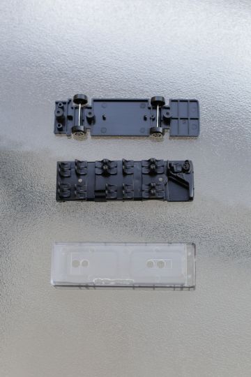 Due to the way the plastic window bit sat below the metal roof, Dremeling a slot into the top of the plastic provided a natural place for the top of the screen to be inserted into, holding it firmly in place and raising it enough to align it properly with the window, hiding the non-screen parts. Yes, I did really luck out with the screen/bus combination.