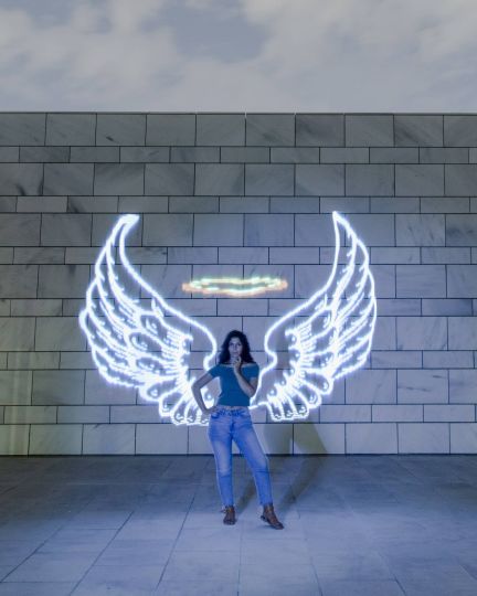 This is an experimental side-project I did. It's a stick with a bunch of individually-addressable LEDs, with a microcontroller. You load an image onto it, drag it from left to right while taking a long exposure, and it displays the image in the end result.
